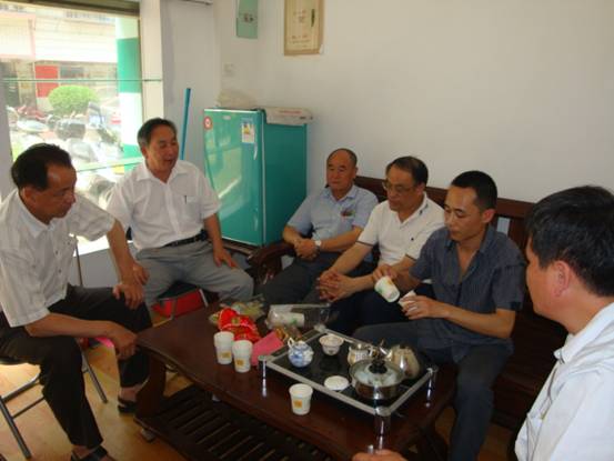 欧练明会长向征头宗亲介绍了漳州三欧宗亲会的工作开展情况,分会顾问欧阳秉乾就欧阳、欧、区三姓的起源与目前漳州地区欧阳、欧氏的世系来源做了简要的介绍。座谈中,欧练明会长表示今后宗亲联谊会将对品学兼优的宗亲学子给予奖励,将对学习中生活中有困难的宗亲给予帮助。大家表示,今后要继续加强宗亲之间的联络与交流活动,不断增强宗亲之间的感情。最后分会赠送给征头宗亲国家领导人接见世界三欧宗亲会会长欧宗清的照片万年历牌匾,大家还愉快地集体合影留念。