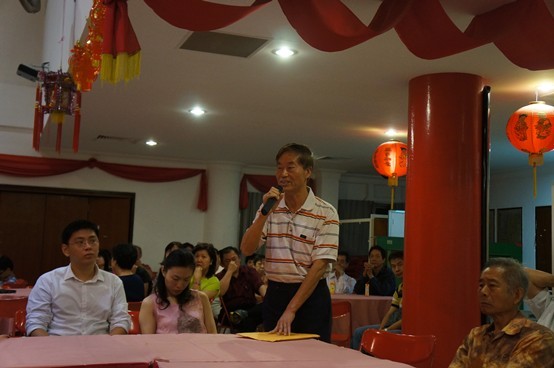 新加坡欧阳公会会长欧明萍做了深情讲话,他感谢世界各地三欧宗亲前来祝贺公会成立20周年,特别感谢世界三欧宗亲联谊会派员专程出席,他表示要继续努力,办好新加坡公会,并在总会的带领下,依靠公会宗亲,为东南亚三欧组织发展做出独有的贡献。