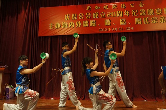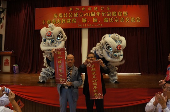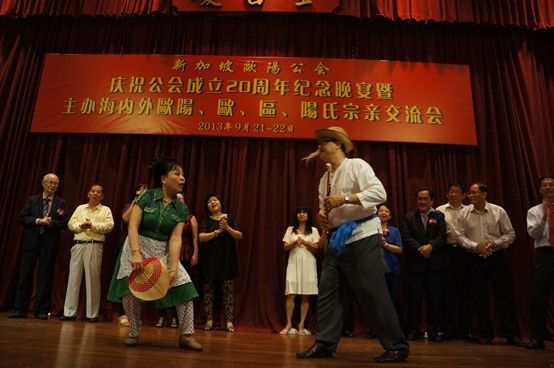 新加坡各地三欧宗亲,马来西亚、印尼、台北、金门、澳门等地宗亲欢聚新加坡金门会馆,载歌载舞,共同庆贺新加坡公会成立20周年,共同倾诉宗族情谊。