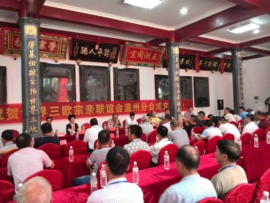 玉苍山之南,鳌江水侧畔。仲夏时节,花树扶疏,瓜果飘香,生机盎然。2015年6月13日一早,浙江温州苍南矾山南宋社区金山欧阳氏大宗祠内就张灯结彩,人声鼎沸,一派喜气洋洋,因为这一天,是世界三欧宗亲联谊会温州分会成立的大喜日子,是浙江三欧宗亲的重大喜事。