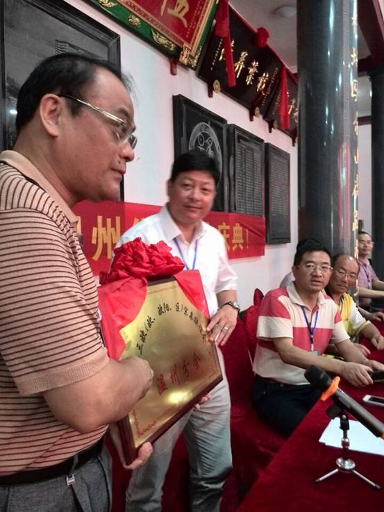 九点三十分吉时,庆典仪式正式开始,在热烈的掌声中,浙江温州世界三欧分会筹备秘书欧阳治民汇报了分会筹备的艰难过程;世界三欧宗亲联谊会秘书长欧泽荃宣读了总会批准成立世界三欧宗亲联谊会温州分会的批复;世界三欧宗亲联谊会常务副会长、文化研究会会长欧阳秉乾受欧建勇常务副会长的委托为分会授牌匾,代表总会对世界三欧宗亲联谊会浙江温州分会的成立表示热烈祝贺,对参加筹备的浙江三欧宗亲表示衷心感谢,并代表总会对分会提出加快联络浙江其他宗亲、落实编写《中华三欧总谱》、推动三欧文化建设和加强三欧经济建设等四项要求;