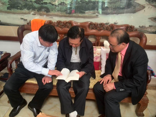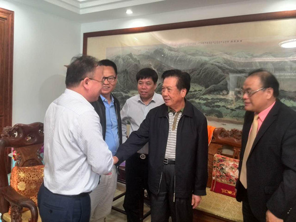 羊城三月好春光,珠江潮水涌真情。在木棉花开的阳春时节,世界三欧宗亲联谊会欧建勇会长于3月24日上午,携常务副会长兼世界三欧文化研究会长欧阳秉乾、常务副会长兼秘书长欧泽荃、副会长欧阳浩,副会长欧雷,副会长兼世界三欧企业家商会会长欧阳炳华,世界三欧企业家商会秘书长欧如法,广东茂名三欧宗亲欧观朝、欧洲、欧权、欧泽铭等,专程前往白云山下某部驻地,探访曾在对越自卫反击战一线指挥作战过的三欧宗亲欧阳金谷中将,表达世界三欧宗亲联谊会对欧阳金谷将军的崇高敬意。